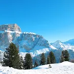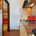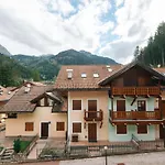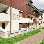 Eine Mikrowelle, ein Kühlschrank und Küchenutensilien sind in einer Küchenzeile zum Selberkochen vorhanden. Es sind 10 Gehminuten zur Seilbahnstation Avisio.